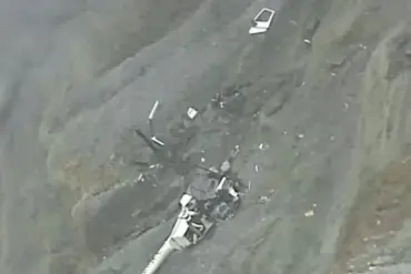A shattered aircraft, its remains buried within the...