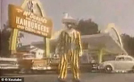An unearthed video from decades past revealed what Ronald looked like during his early years, and the image was far removed from today’s cheerful iconography. With a drink cup for a nose and a food tray as his hat, the original Ronald bore an eerie resemblance to a scarecrow rather than a beloved mascot. Released in 1963, this advertisement showcased Ronald’s prodigious appetite for hamburgers, featuring him donning a magical belt that produced three burgers at will before cheerfully skipping off to a McDonald’s restaurant.