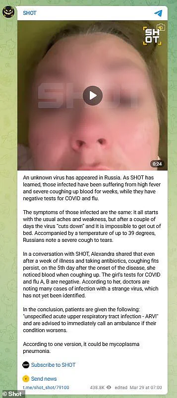On March 29th, a post on Telegram garnered over 430,000 views and featured Alexandra, a woman who claimed to have contracted this illness.