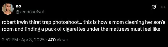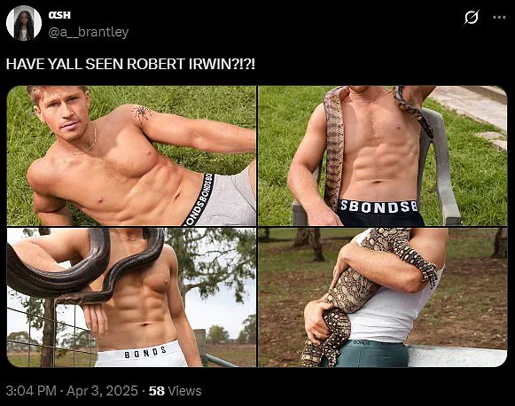 These striking images quickly went viral on X (formerly Twitter), sparking discussions and fan reactions from around the globe. ‘Robert Irwin… I was unfamiliar with your game,’ one person wrote, accompanied by a sweating-face emoji.