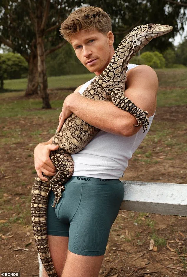 Robert, who is the son of the late icon Steve Irwin, posed in a series of striking pictures for People Magazine as he modeled Bonds, the Australian underwear brand that’s he’s helping bring to the U.S.