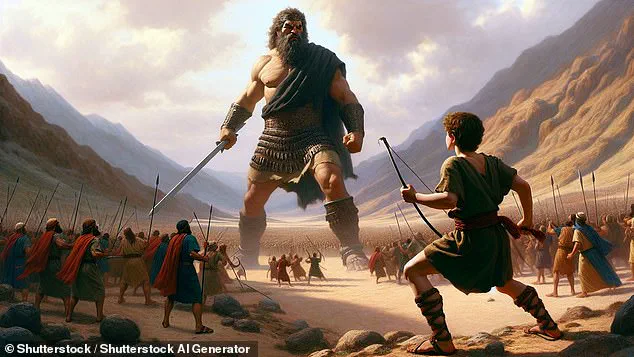 The story recounts how young David, with nothing but his faith in God and a slingshot, stood against Goliath’s towering frame—nine feet nine inches tall by some accounts—and emerged victorious.