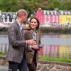 The royal pair are seen both standing and sitting, arms linked in a tender embrace, showcasing their enduring bond against the backdrop of this historic site.
