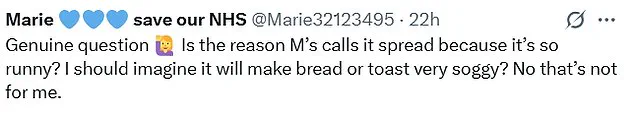 Weird.’ Another said: ‘Is the reason Meghan calls it spread because it’s so runny?