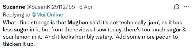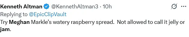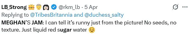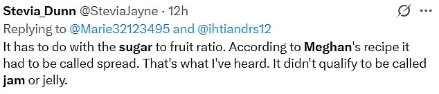 Fans online flocked to X to agree, with many questioning the look of Meghan Markle’s raspberry spread, which is made in a factory.