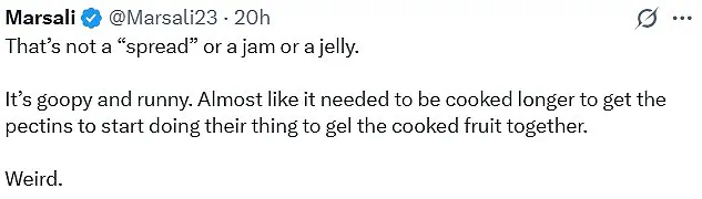 Fans online were also quick to notice the thin consistency of the ‘jam,’ with one person writing: ‘I can tell it’s runny just from the picture!