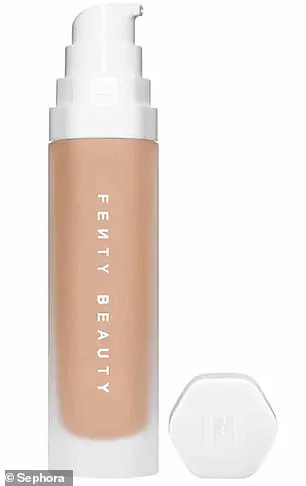 Following this serum, she combines two foundations: Rihanna’s Fenty Beauty Soft’Lit Naturally Luminous Hydrating Longwear Foundation ($40) and the $47 Too Faced Born This Way liquid foundation.