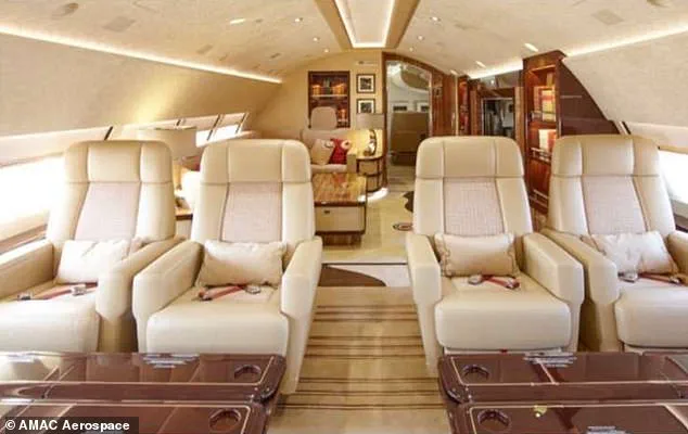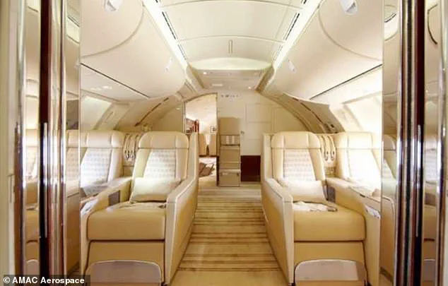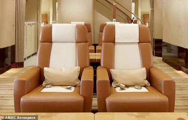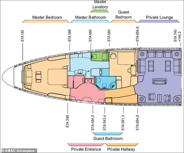 Inside, the aircraft features opulent suites, private staterooms, and a dining room that rivals the grandeur of a five-star hotel.
