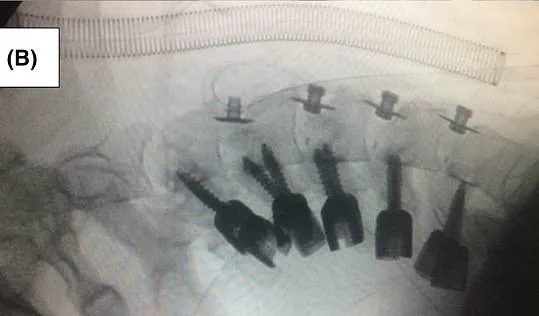In order to re-adjust the position of the neck, doctors decided to remove the deformed bone and used a locking cage to support the neck.