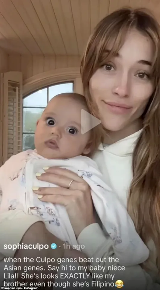Dozens of users condemned Sophia’s remarks as ‘insane,’ with some expressing confusion over why she would make such a comment. *‘Like why would she say that?’* one viewer wrote, while another added, *‘Why would she ever, why, why.’* Others were equally stunned, with one simply typing, *‘Uhmmmmm??!’* and another stating, *‘My mouth dropped.’* The post’s caption was repeatedly criticized for its insensitivity, with one user noting, *‘There were SO MANY different ways to say, “My niece looks like my brother!”’* The suggestion that a child’s resemblance to a parent could be framed as a ‘gene battle’ between ‘Culpo’ and ‘Asian’ genes was seen as deeply problematic.