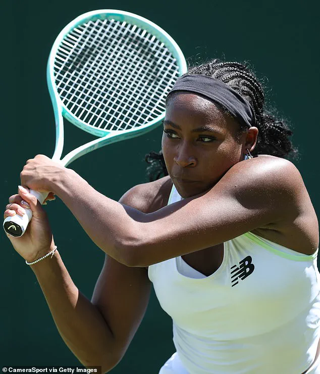 EYE ON THE BALL: Coco Gauff is pictured during a practice session in London ahead of Wimbledon 2025