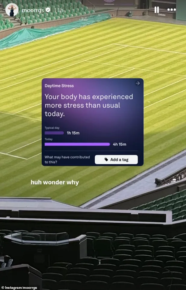In a series of stories, she revealed data from her personal fitness tracker, showing that her stress levels spiked to an unprecedented 4 hours and 15 minutes on Monday—compared to a typical day, where her stress duration is around 1 hour and 15 minutes.