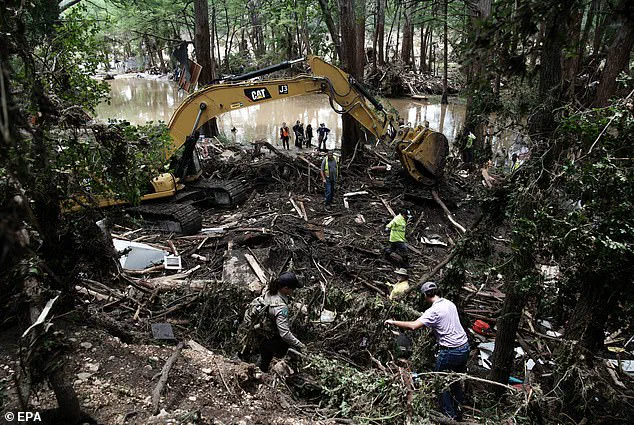 The floods ravaged Kerr County as the death toll topped 100 victims, many of which were children (Pictured: First responders looking for survivors and remains).