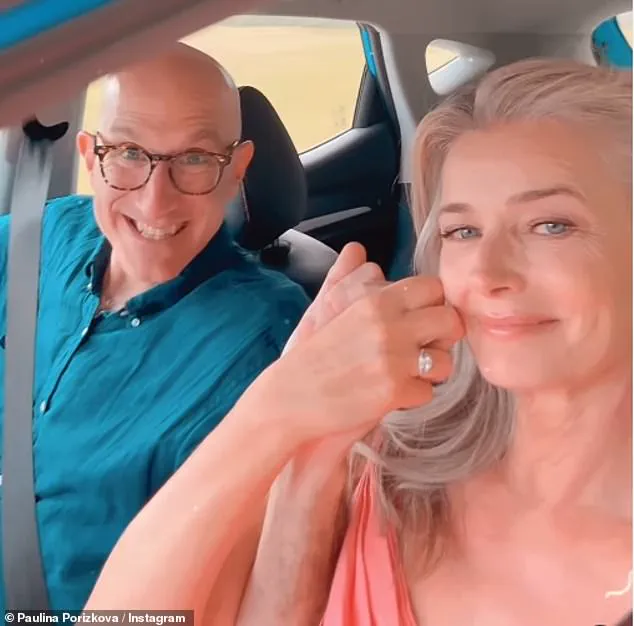 The clip, which has since gone viral, captures the couple in a car, their hands clasped together as Porizkova holds up her sparkling new engagement ring for the camera.