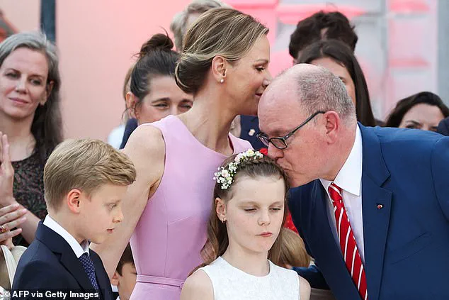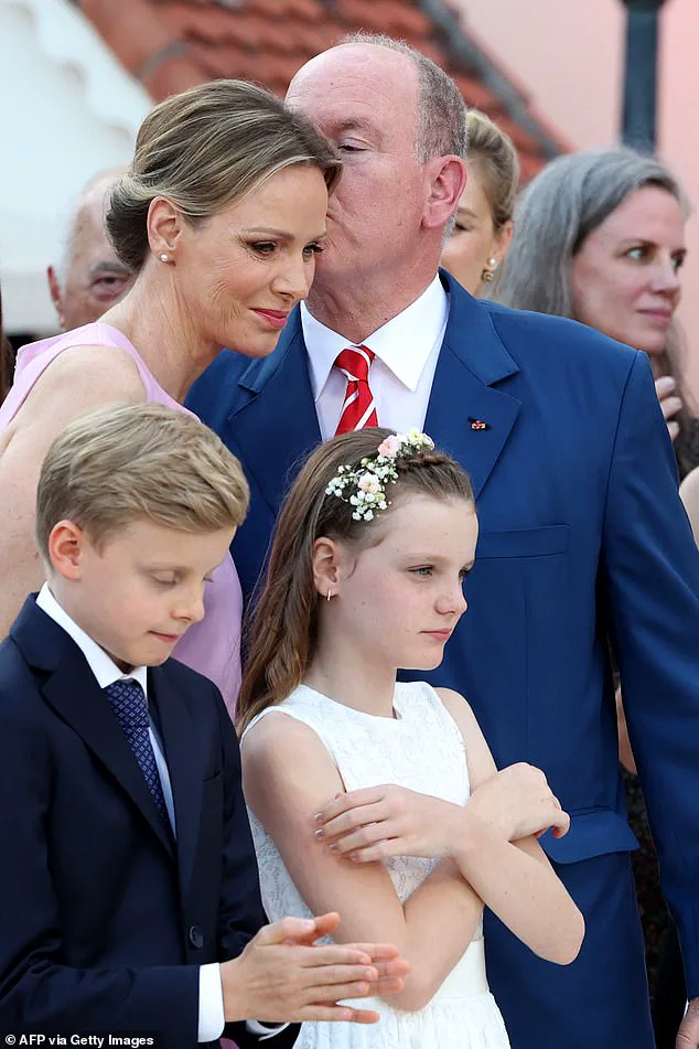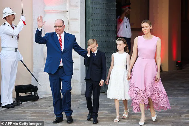 Albert, 67, and his wife Charlene, 47, were accompanied by their 10-year-old twins, Crown Prince Jacques and Princess Gabriella, as the royal family celebrated the joyous occasion at the Palace Square.