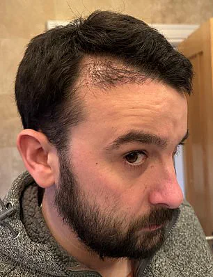 The wind had blown his hair back, revealing a patchy, uneven scalp that left him feeling more deflated than ever. ‘That was the turning point,’ he says. ‘I knew I had to do something.’