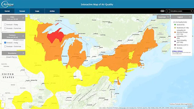 In northern Wisconsin, the AQI has climbed to 151–200, a ‘very unhealthy’ category that can trigger serious health issues even in otherwise healthy individuals.
