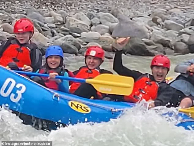 Justin Trudeau, the former Prime Minister of Canada, was recently spotted enjoying a moment of pure, unfiltered fatherhood as he and his youngest son, Hadrien, grappled with the rapids of a white water rafting adventure.