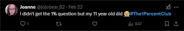 Some took to platforms like X to share their reactions, with one user writing, ‘Nowhere near the 1% question this week, well done to the two who spotted it.’