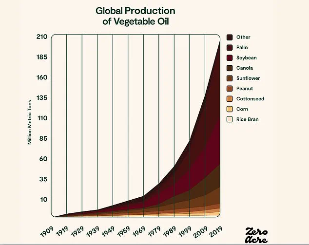 Cardiovascular disease and cancer are America’s two biggest killers, taking 900,000 and 600,000 lives every year, respectively. The average American consumes almost 100 pounds of seed oils per year, according to some estimates, which is up about 1,000-fold compared to the 1950s. Seed oils became popular in the United States after WW2 thanks to agricultural advances.