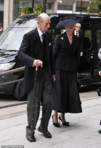 Lady Gabriella Windsor, draped in a flowing black gown, followed closely behind, while The Duchess of Edinburgh, resplendent in a somber yet elegant ensemble, took her place among the mourners.