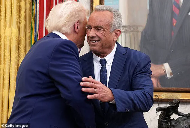 The move comes as Robert F Kennedy Jr (pictured here with President Donald Trump) has called for the Covid shot to no longer be recommended for healthy children