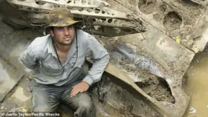 The plane, which had vanished during World War II, was finally identified using its serial number, a detail that allowed Taylan to confirm its identity within a month of his arrival. ‘There were remains in the open that I saw, but these are from an airplane crash,’ Taylan recalled, his voice tinged with both awe and sorrow. ‘In World War II, it was a violent thing.’