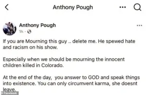 Pough’s Facebook post appeared to align with Kirk’s rhetoric, suggesting that the influencer’s assassination was a form of divine retribution for his views.