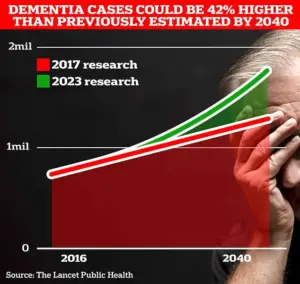 Around 900,000 Brits are currently thought to have the memory-robbing disorder. But University College London scientists estimate this will rise to 1.7million within two decades as people live longer. It marks a 40 per cent uptick on the previous forecast in 2017