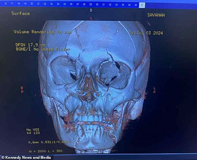 A scan of her facial bones revealed the extent of the damage, with shattered structures requiring meticulous reconstruction.