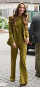 Kate’s chartreuse green ‘willow’ suit—a £850 patch pocket jacket paired with £490 ‘Alina’ trousers—was both a nod to Posh Spice’s recent media resurgence and a masterclass in royal PR. ‘It’s not just about the clothes,’ said one fashion analyst. ‘It’s about aligning with a brand that’s now synonymous with reinvention.’