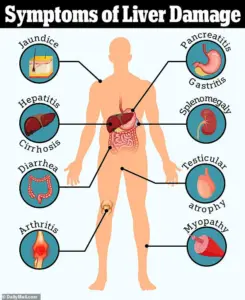 Beyond the nails, physical changes in the abdomen can also signal liver damage.