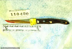 A 10-inch kitchen knife was found embedded in her chest, very close to her heart.