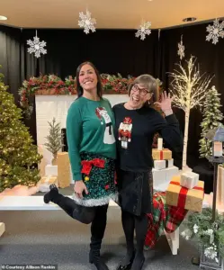 Allison Rankin is pictured above (left) at a family Christmas get-together in 2022 with her mother (right). She had to throw up in the bathroom at the event from eating too much while taking a GLP-1 agonist. She warned others to watch their portion sizes