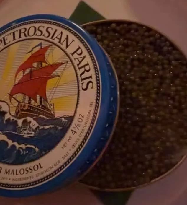 The German supermodel was keen to show off lavish tins of Petrossian caviar littering the tables of a venue she attended