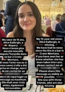 Her brother took to social media to plead for information, stating, ‘We have no news.’ Kallergis, a permanent resident of Switzerland, was reportedly celebrating New Year’s Eve with friends in the upscale resort town nestled in the Swiss Alps.