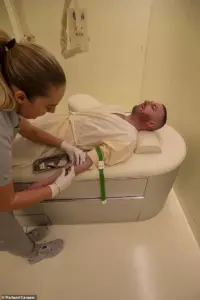 Dr Max gets comfortable as he has his blood taken, which will be sent off for a speedy analysis