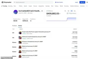The event, which occurred with little public warning, triggered a surge of bets on platforms like Polymarket, where the trader placed wagers totaling around $34,000 and eventually secured a staggering $410,000 in returns—a 1,200% profit.