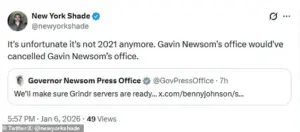 The governor’s office, in a statement on X, quipped, ‘We’ll make sure Grindr servers are ready…’—a reference to the popular gay dating app with 15 million active users per month.