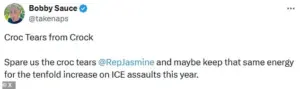 One user sarcastically wrote, ‘Did you squeeze out a tear?’ while another mocked her performance as ‘the worst fake cry I’ve ever seen.’ The criticism extended beyond social media, with liberal celebrities like Bowen Yang and Matt Rogers of Las Culturistas warning their fans not to donate to Crockett’s Senate campaign. ‘Don’t waste your money sending to Jasmine Crockett,’ Rogers said, his tone sharp with disapproval. ‘Do not do it.’ The timing of the backlash, however, was not lost on analysts who noted the broader political maneuvering at play.