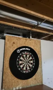 A final hint, however, proves the most crucial: ‘Take a look at the top half of the photo above the dartboard.’ This directive shifts the focus from the board itself to the ceiling, where the missing dart is ultimately found.