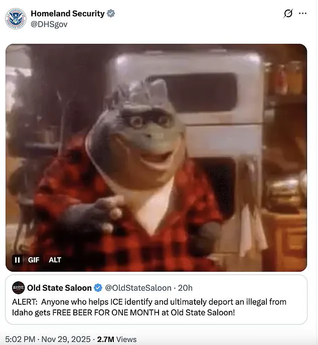 His previous promotion, which offered a free month of beer to anyone who ‘helps ICE identify and ultimately deport an illegal from Idaho,’ gained national attention when the Department of Homeland Security itself reposted the message on its social media accounts.