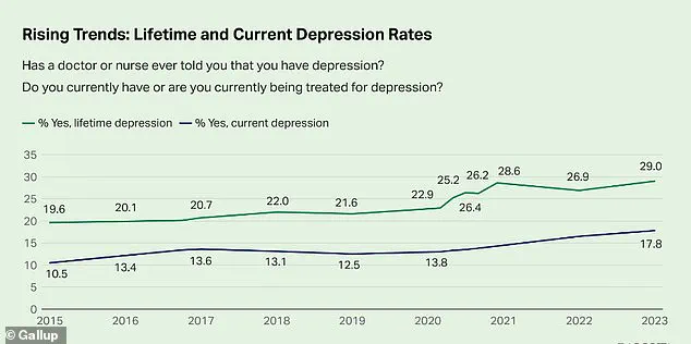 The mental health landscape in the United States has shifted dramatically over the past decade, with new data revealing a stark increase in depression rates among adults.