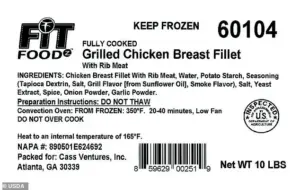 Products may still be in commercial cold storage and must not be served.’ The FSIS emphasized that the chicken, with a lot code of 60104 P1382 287 5 J14, was produced on October 14, 2025, though no expiration dates were included on the packaging.