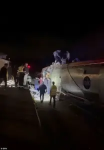 Salvador Jiménez of Radio Nacional de España (RNE), who was on the train, described the derailment as feeling ‘like an earthquake.’ He said the train’s crew immediately called for medical personnel onboard to help the injured, adding that at least one of the derailed carriages ‘had completely overturned’ and had broken windows.