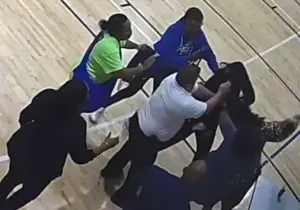 Gray, who had initially stepped back, then joined the fray, leading to a chaotic tangle of limbs and hair.