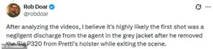 Dobar’s analysis, shared on X, points to the possibility that an agent removed the weapon from Pretti’s holster and inadvertently triggered it, though this remains unconfirmed.