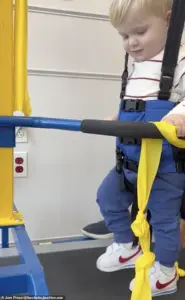 Nearly a year later, he is now able to walk and run without a mobility aid, though he remains in ongoing therapy. ‘It has been heartbreaking and humbling to watch,’ Wear said. ‘Things you never think twice about – holding a spoon, taking a step, saying a word – became monumental victories, and this boy has done it three times.’