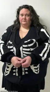 In her mugshot, Morrow appeared to frown, wearing the same skeleton sweater that had drawn attention to her post.