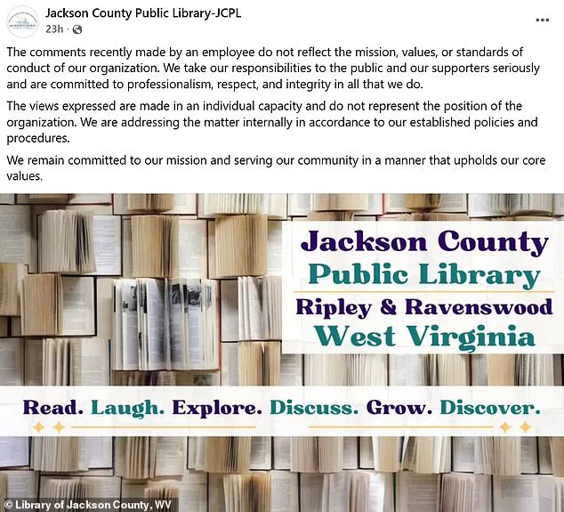 The library emphasized that the comments made by the employee do not reflect the organization’s mission, values, or standards of conduct.